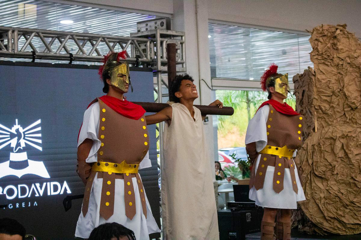 Os membros da Verbo em Juiz de Fora produziram o Auto de Páscoa, que reuniu um grande público e contou com o envolvimento de diversos departamentos em uma apresentação marcada pela fé, arte e trabalho coletivo. A encenação mobilizou 67 pessoas, entre adultos e crianças. O apoio e a unidade entre os integrantes foram fundamentais para que o espetáculo acontecesse com excelência.