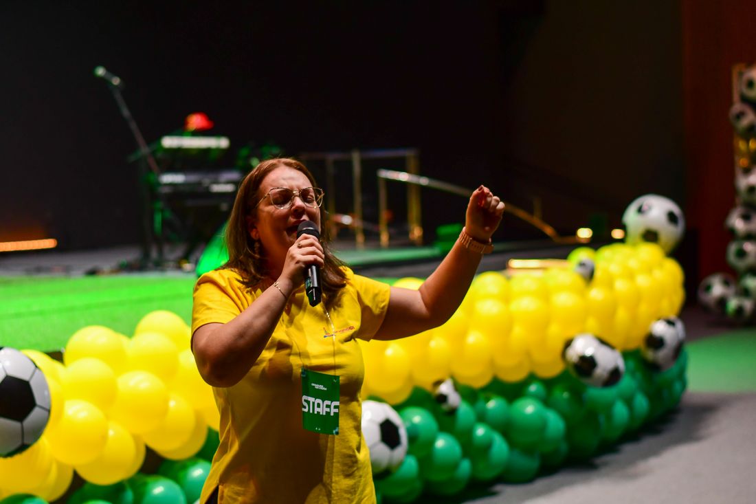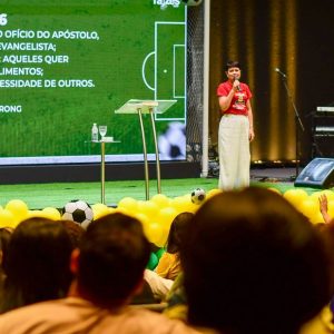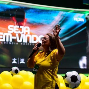 Inspirada na disciplina e no preparo dos jogadores de futebol, a Conferência Raízes promoveu um tempo de treinamento com o tema “Craques na Visão”. O evento realizado na Igreja Verbo da Vida em Aracaju (SE), reuniu 434 voluntários do Departamento Infantil de igrejas, congregações e pontos de pregação, e contou com a participação de Cássia Andrade, da Igreja Verbo da Vida Zona Norte, em Lamarão (SE), e de Edma Wray, da Verbo em Aracaju (SE).