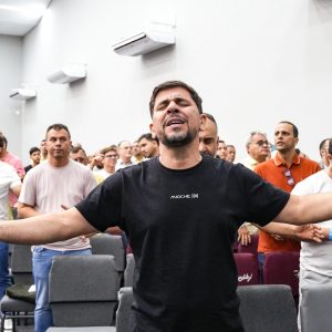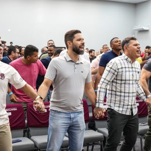 Na continuidade, Arthur Marques, membro do conselho diretivo do Ministério Verbo da Vida (MVV), deu as boas-vindas aos homens ao terceiro dia da Conferência, convidando-os a terem um minuto que comunhão. Ele apresentou os ministros da manhã, o apóstolo Guto Emery e Jason Diamantino. Além disso, convidou Marconi Raulino para divulgar uma grande novidade para aqueles que desejam fazer a Escola de Ministros em 2026: as pré-inscriçõe para a turma on-line. Se você quiser mais informações basta acessar o link abaixo: