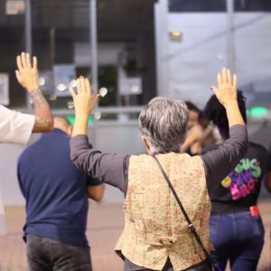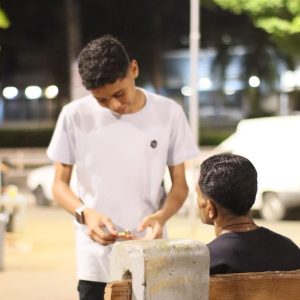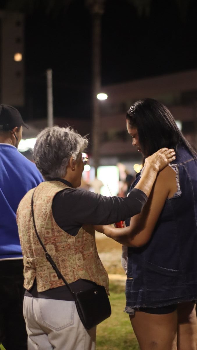 Logo após uma mensagem direcionada, os voluntários se dispersaram pelo local para realizar abordagens pessoais, compartilhando palavras de fé e acolhimento. A estratégia considerou o grande fluxo de pessoas gerado pela presença da Carreta Furacão, que atraía diversas famílias à praça. Como complemento, a equipe distribuiu cartões em formato semelhante aos comerciais, com a mensagem: “Convite especial para uma pessoa especial: você”, destacando o valor individual de cada pessoa alcançada.