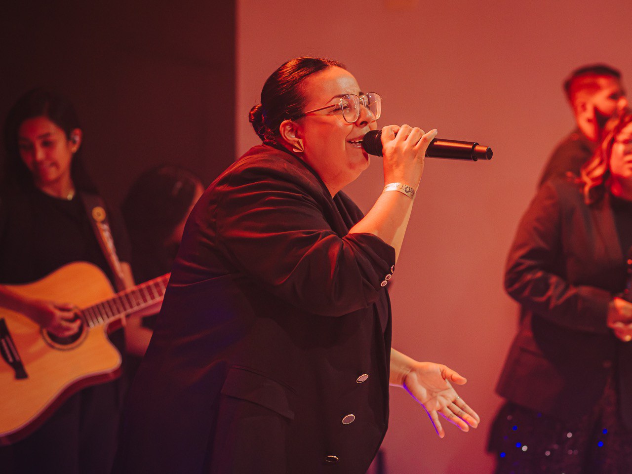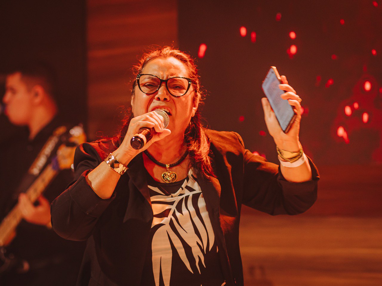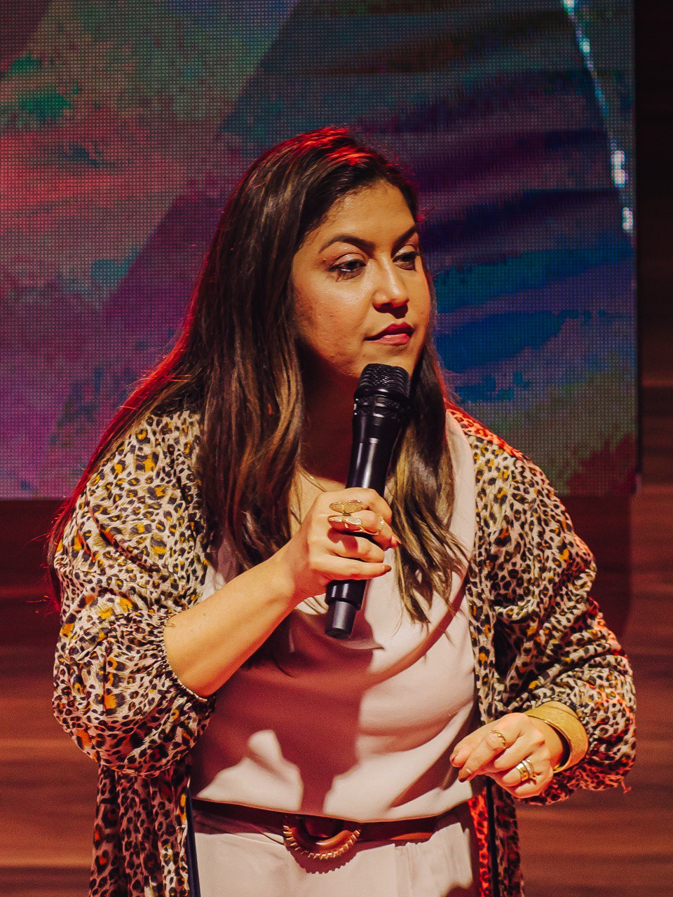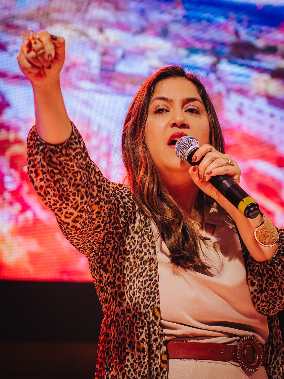 Em seguida, Mizia Elian conduziu a segunda ministração da noite. Guiada pelo Espírito, ela instruiu os irmãos a uma vivência prática das Gotas Proféticas, ativando os participantes com base no texto de Gênesis 2:13. Explicando o significado de Giom, Mizia convocou-os a se tornarem rios transbordantes.