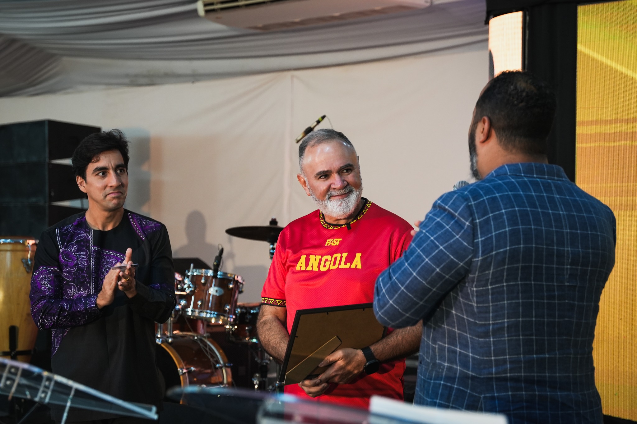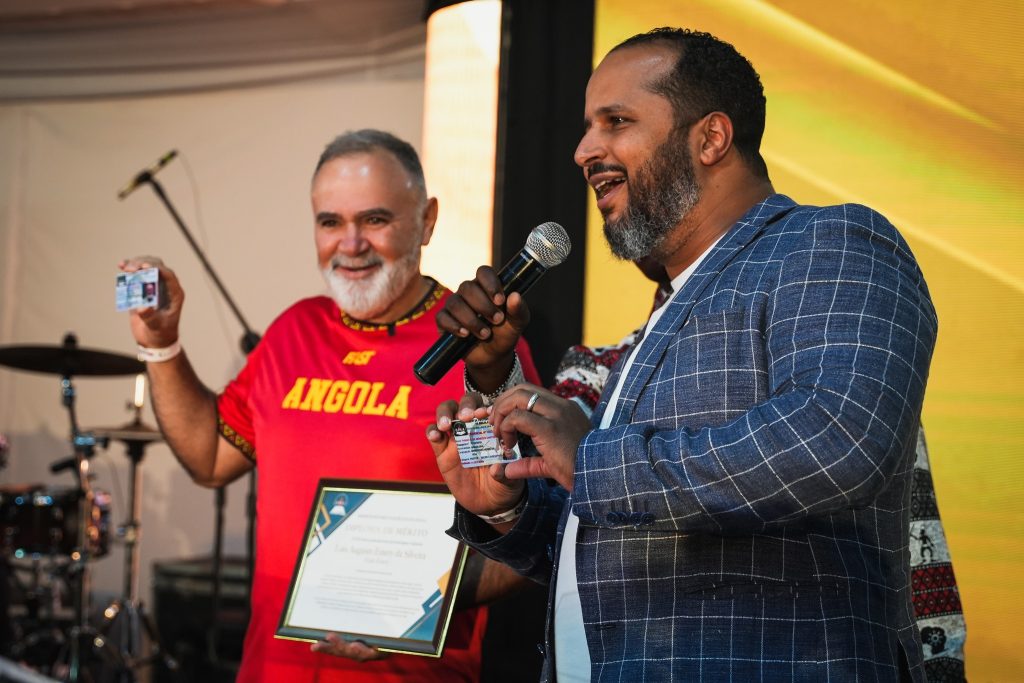 Durante a celebração, o Ap. Guto Emery foi homenageado e recebeu uma placa de Diploma de Mérito, em reconhecimento ao notável trabalho que tem realizado em Angola como presidente do Ministério Verbo da Vida.