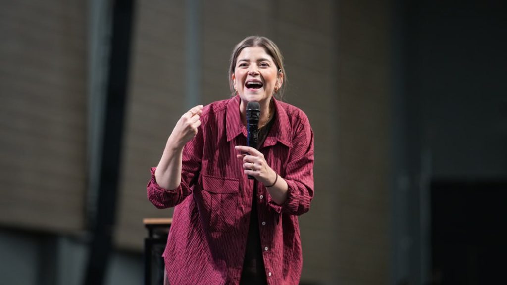 Assim, Laura começou a pregar a sua mensagem. Ela destacou que “fomos criados para o deleite de Deus, pois Ele colocou isso dentro de nós; Ele é nossa fonte de vida”. A cantora disse que muitos buscam prazer em coisas fúteis, mas a Palavra de Deus revela que o verdadeiro deleite está no Senhor. Na sequência, ela citou Efésios 5:18-19: “Não se embriaguem com vinho, mas encham-se do Espírito, pois encher-se d’Ele é superior; salmodiando e cantando espiritualmente, de todo o coração”.