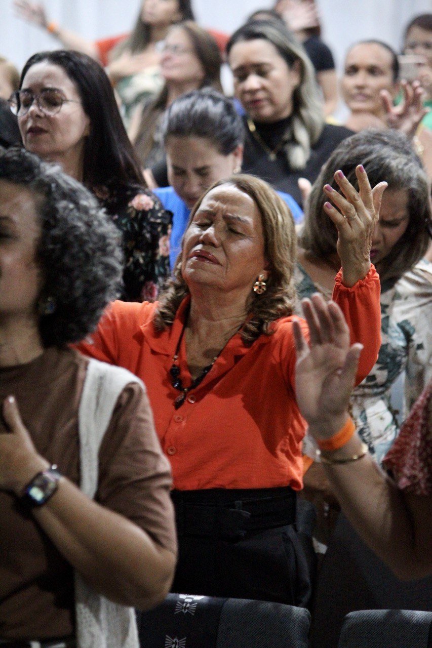 A manhã foi gloriosa e marcada pela presença manifesta do Senhor. Além disso, as participantes também desfrutaram de momentos de comunhão na cantina e livraria da igreja, que permanecem em funcionamento durante todo o evento, proporcionando um ambiente acolhedor para comunhão e conexões entre as mulheres.