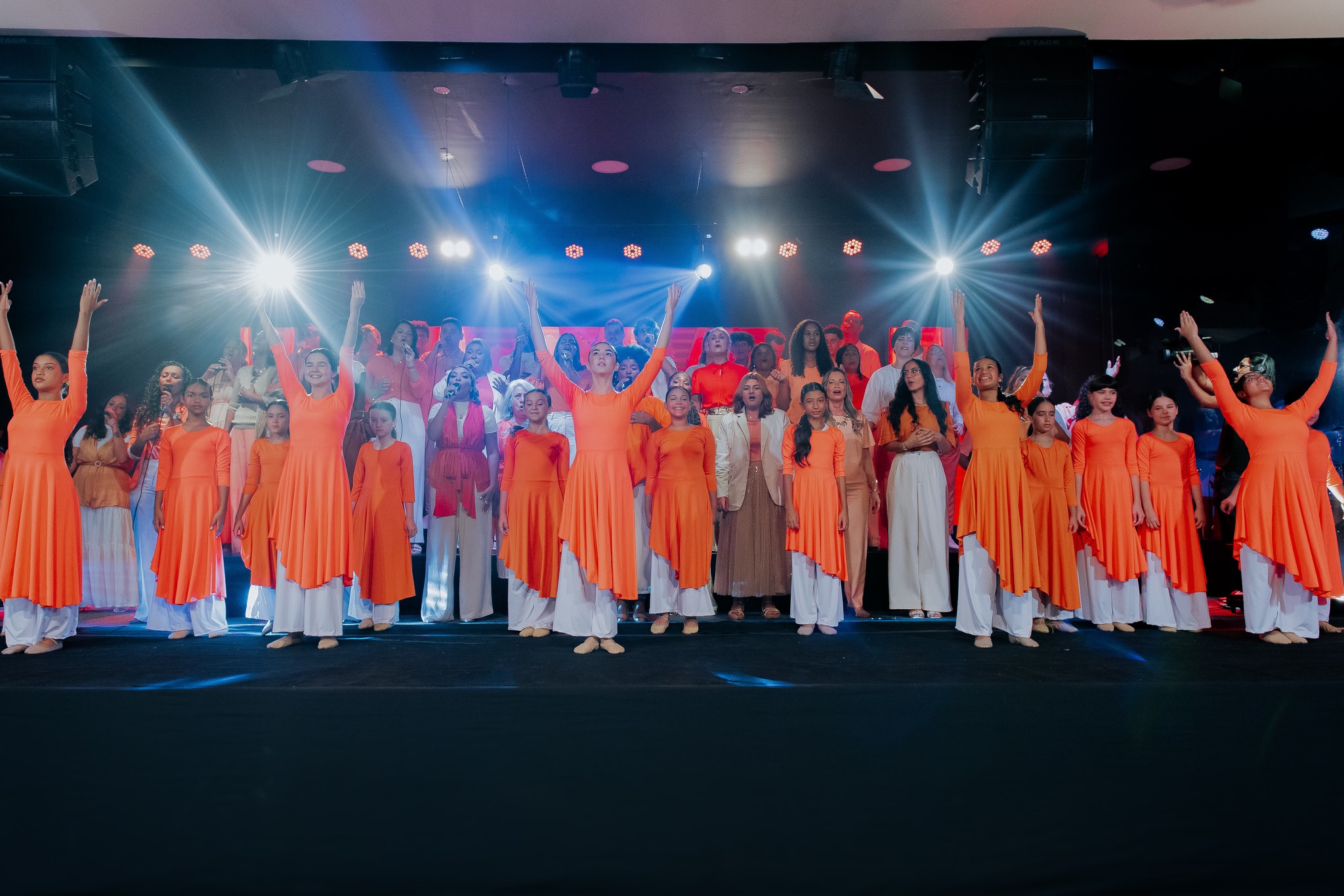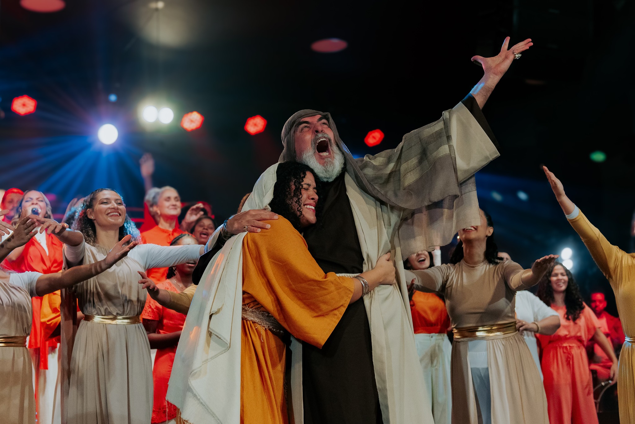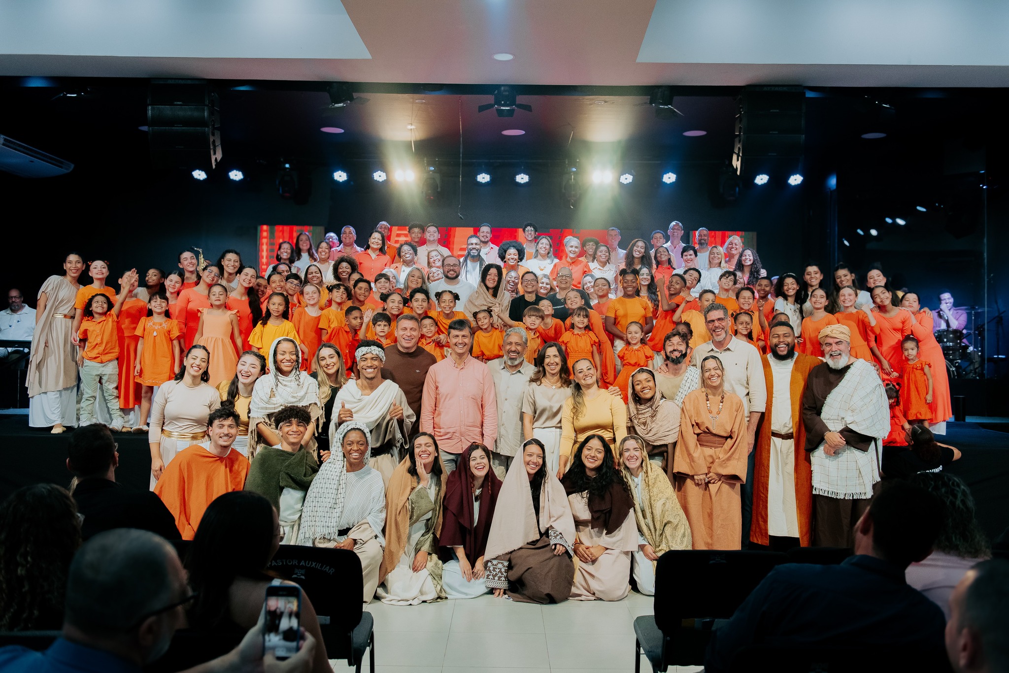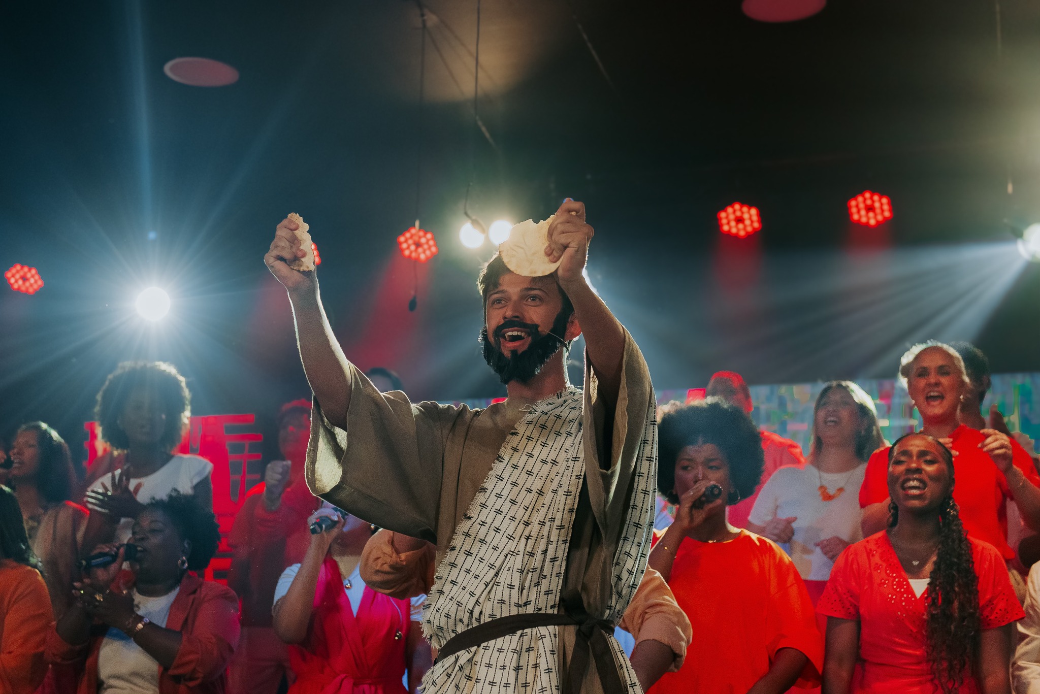 Ao final da apresentação, o público foi convidado a celebrar a salvação em Cristo, em um momento marcado por alegria.