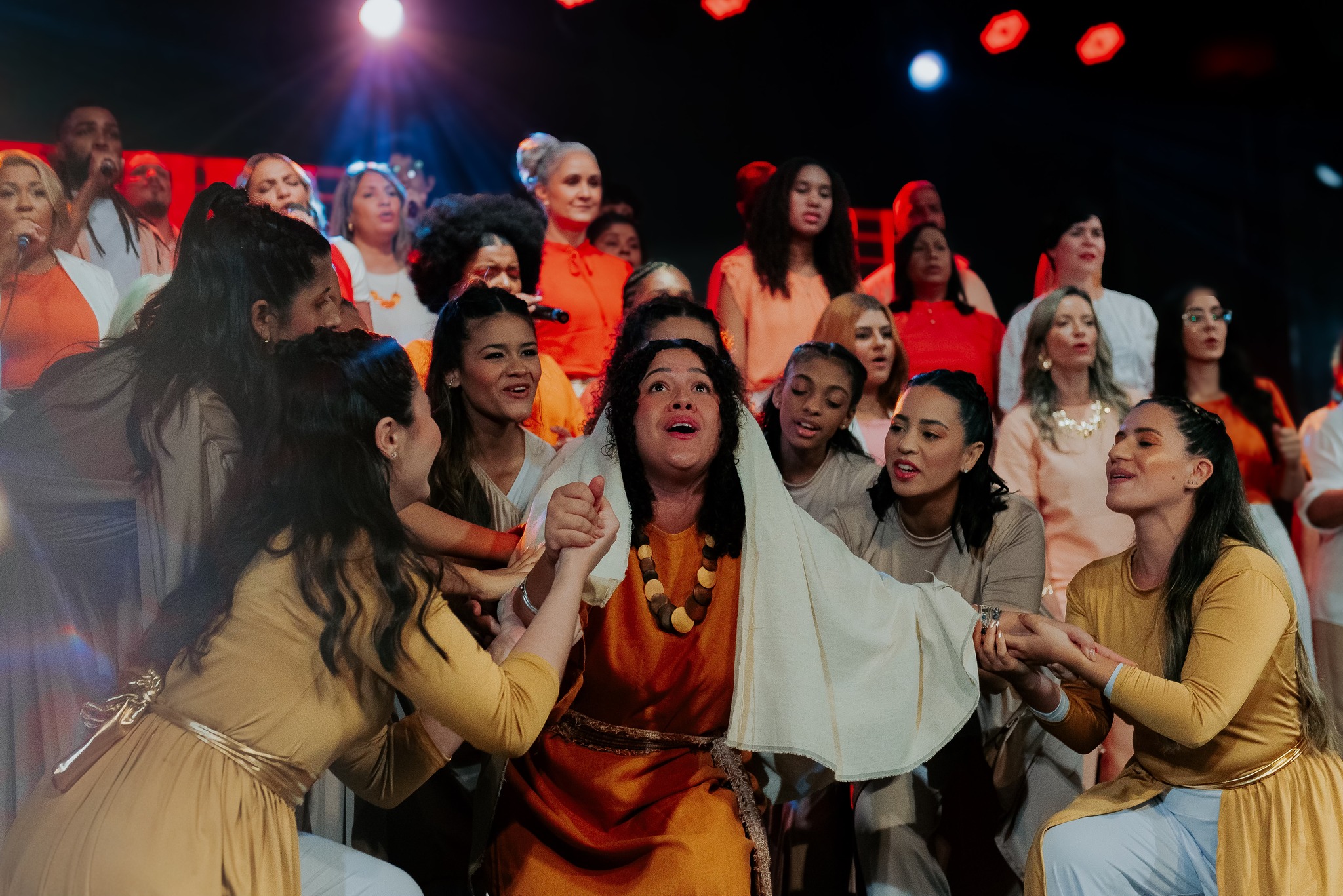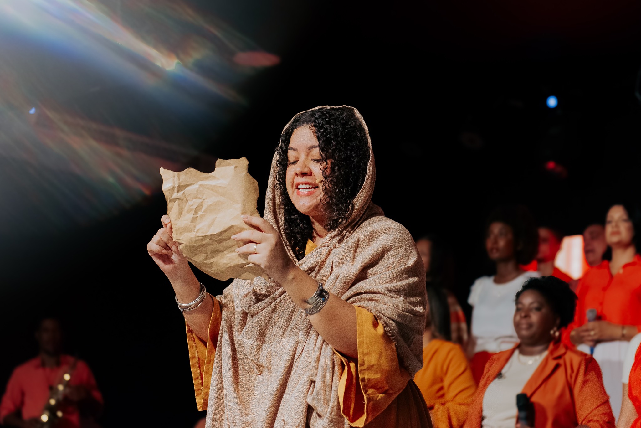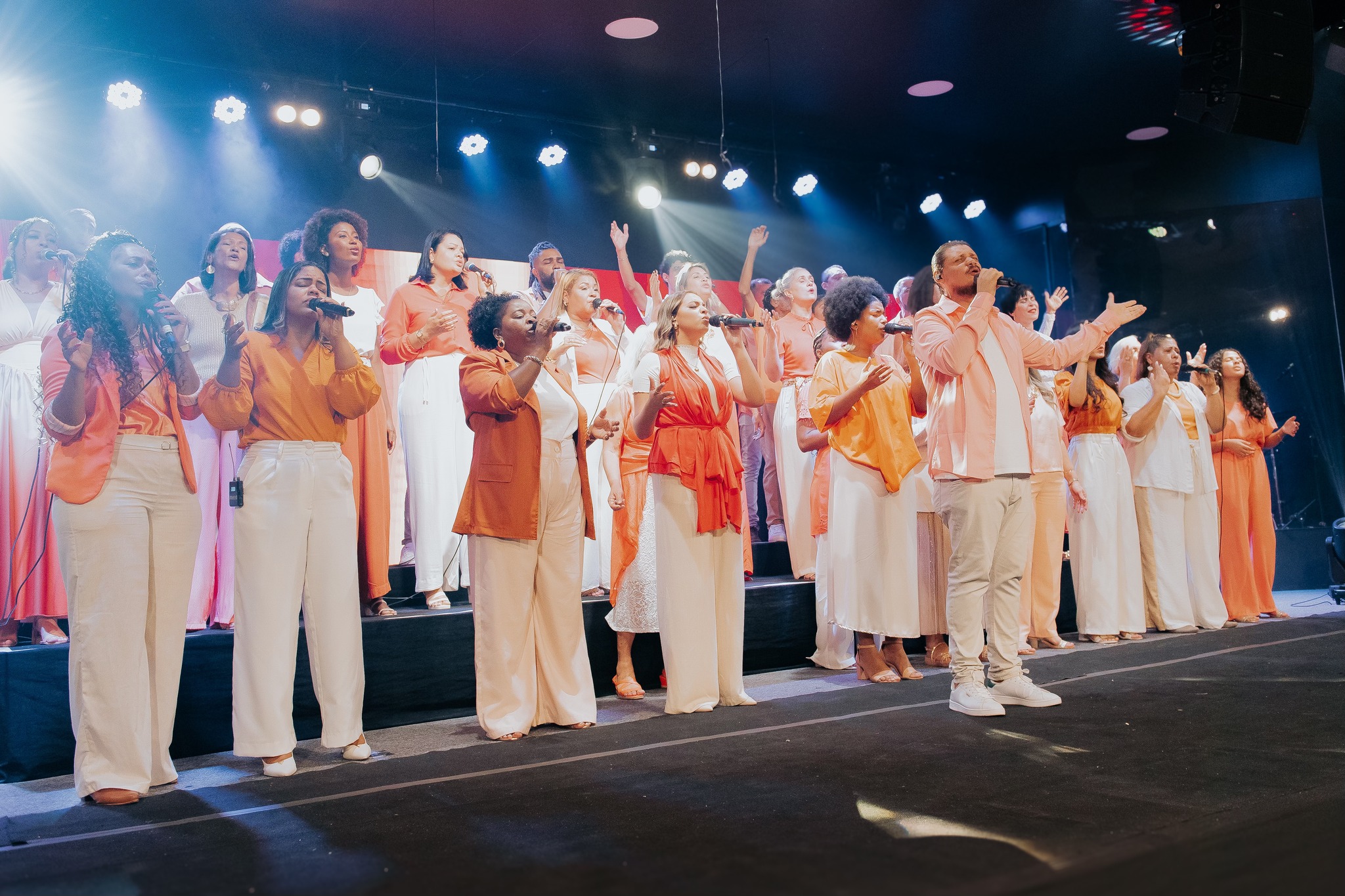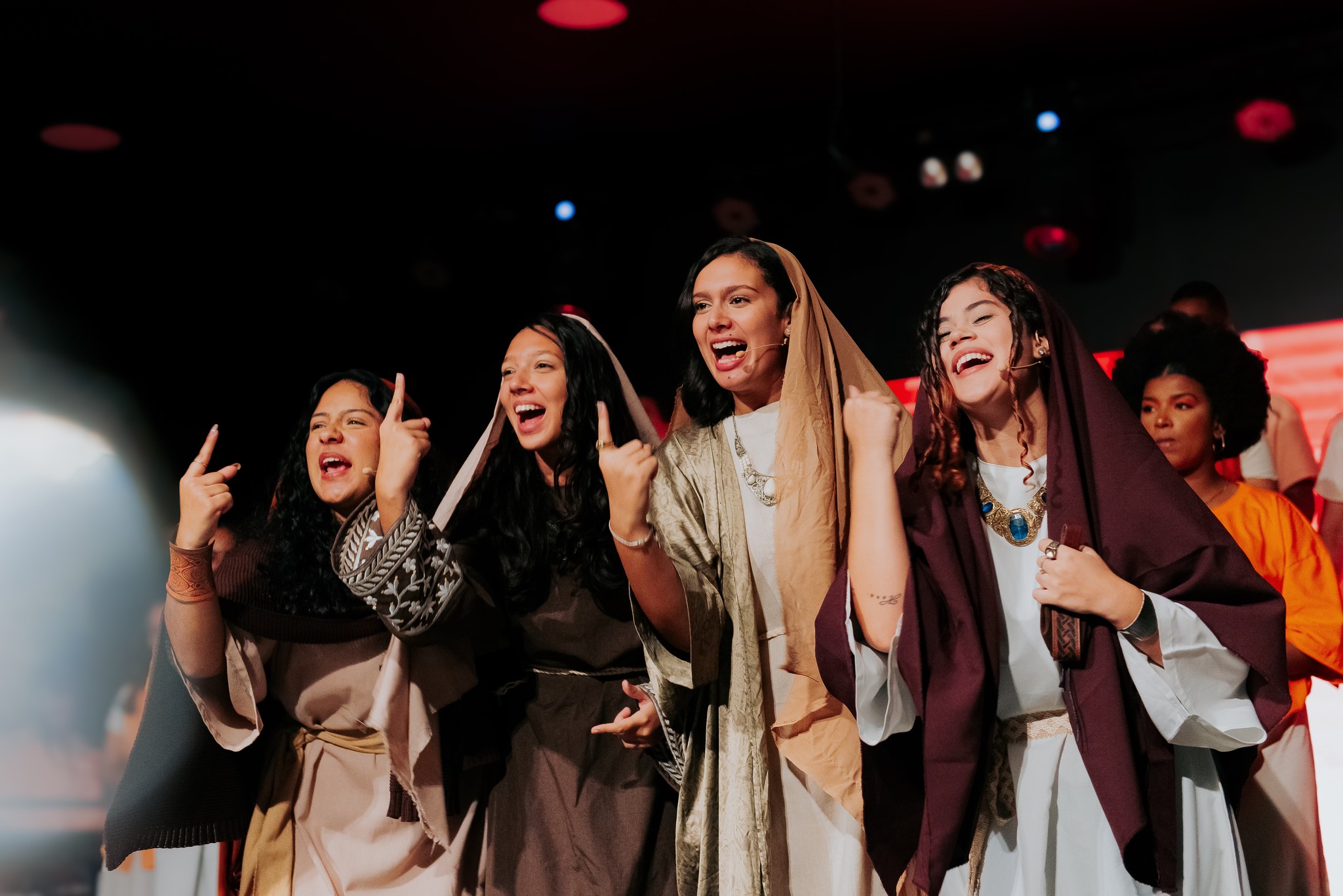 Ao final da apresentação, o público foi convidado a celebrar a salvação em Cristo, em um momento marcado por alegria.