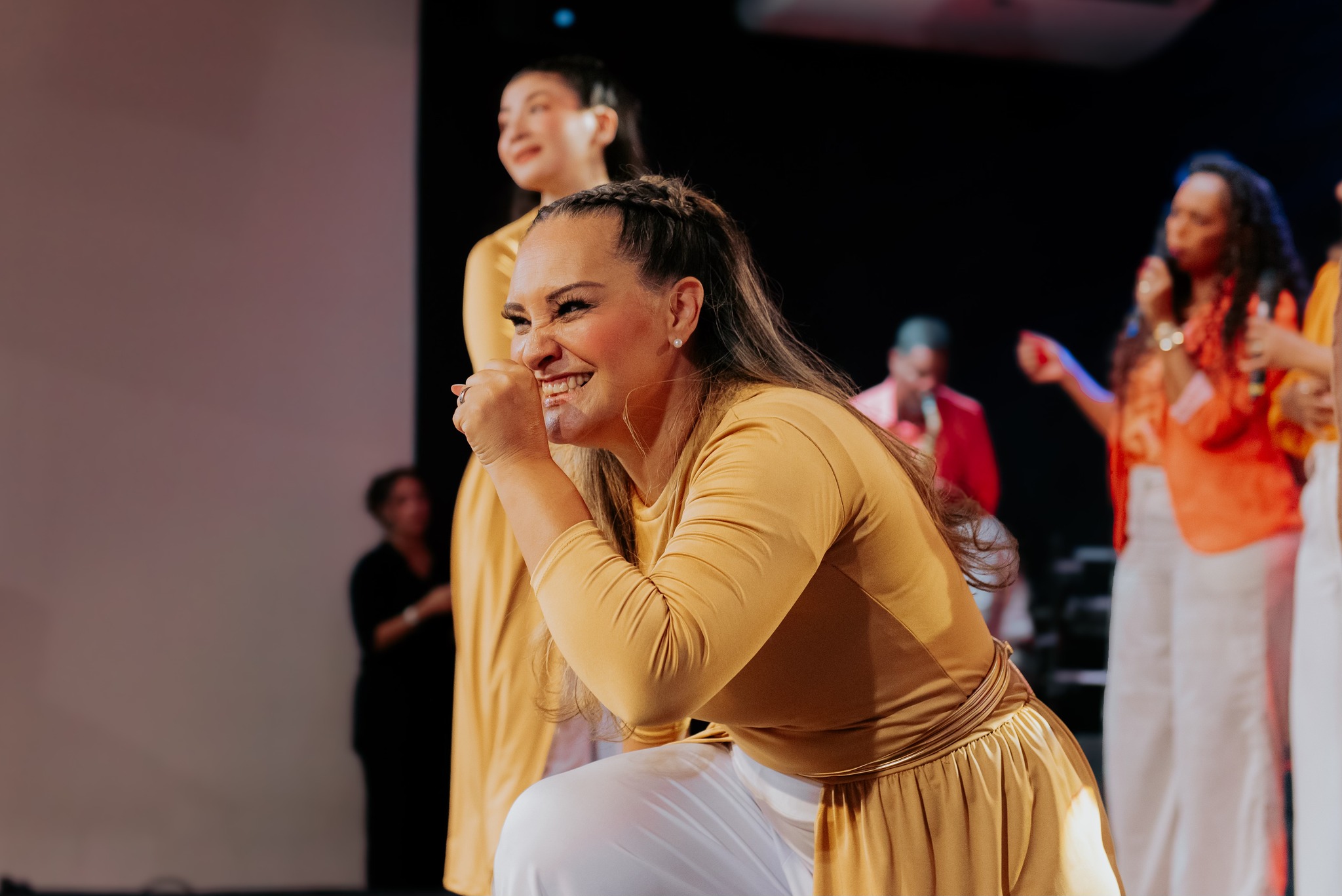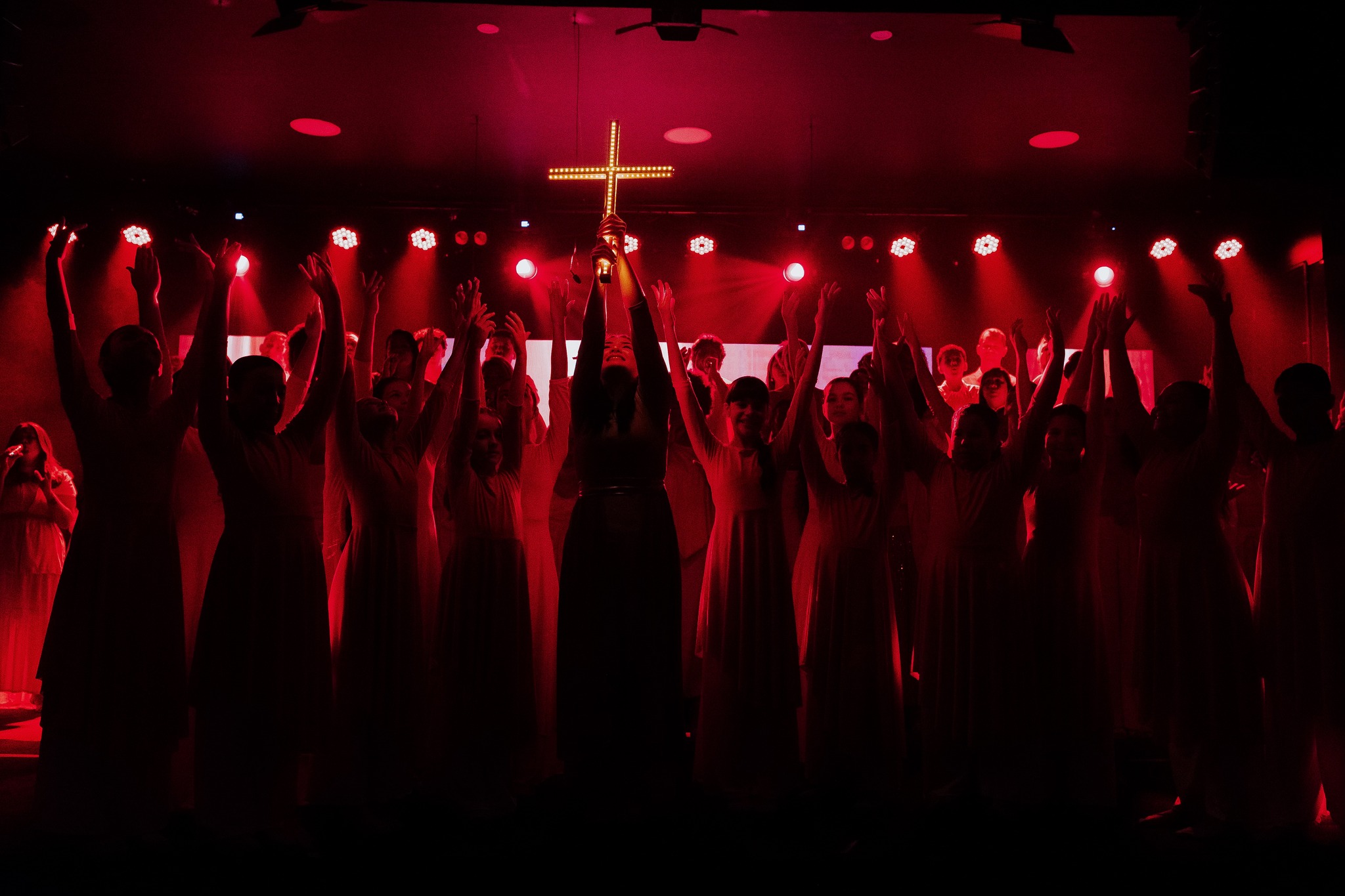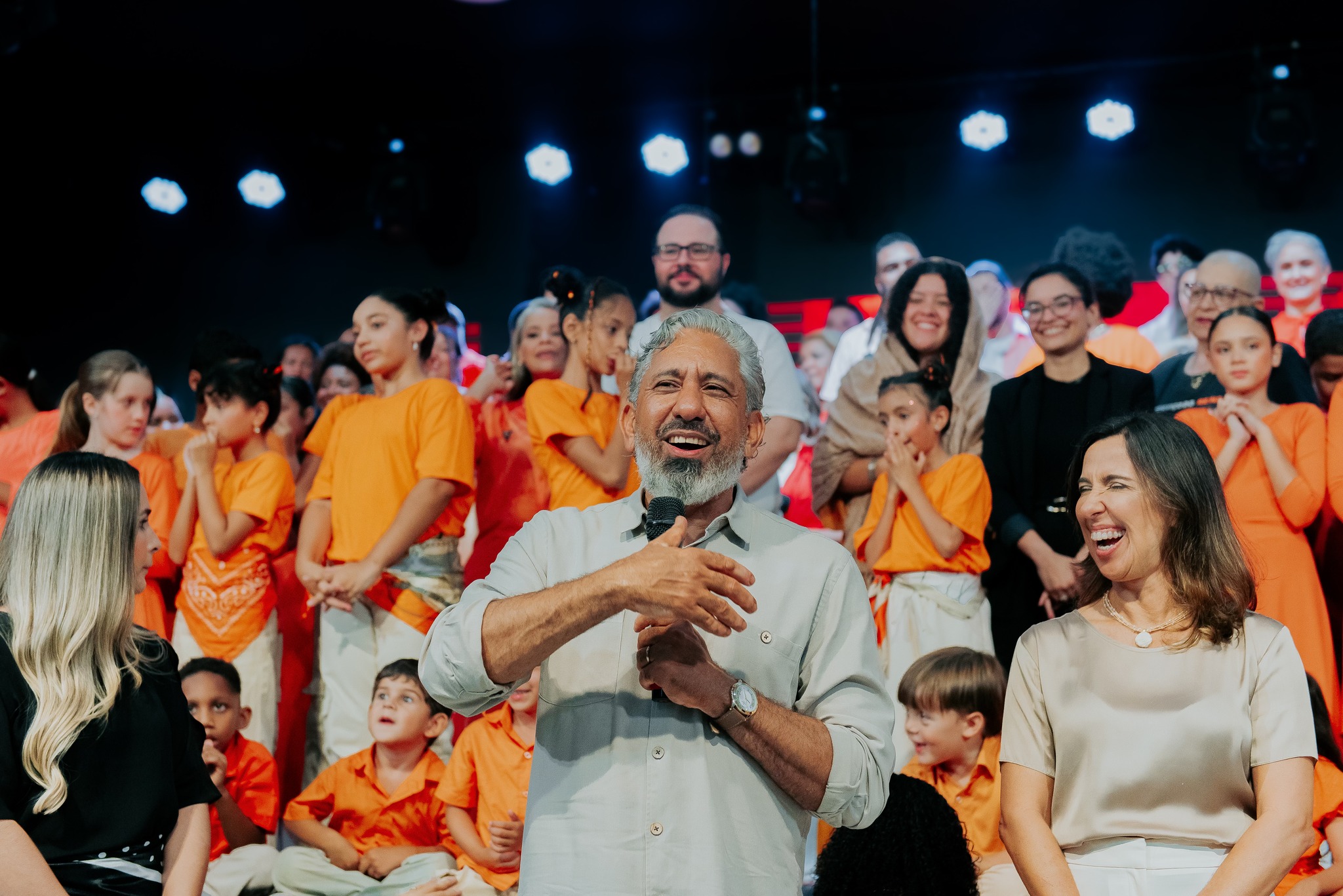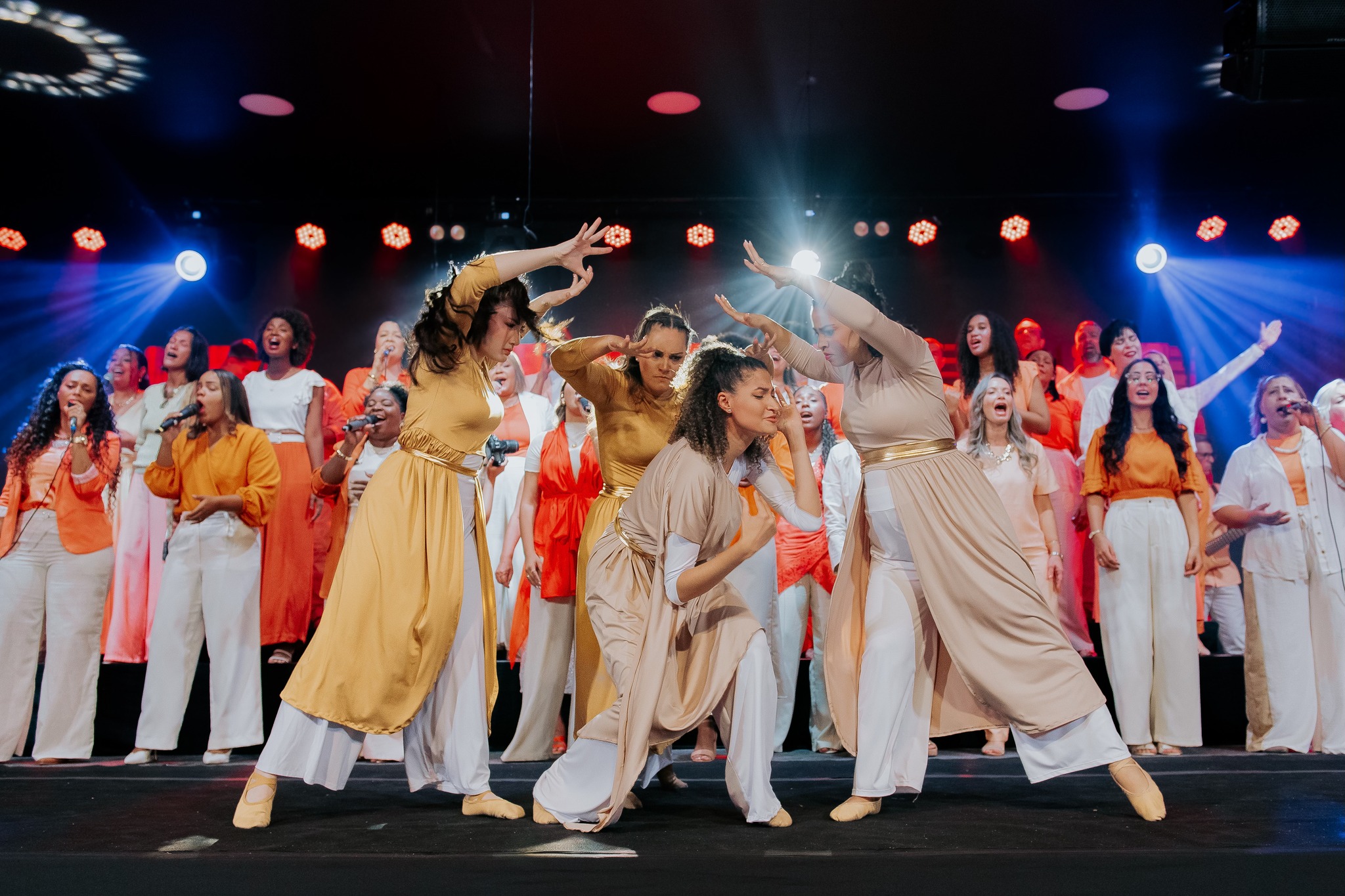 Ao final da apresentação, o público foi convidado a celebrar a salvação em Cristo, em um momento marcado por alegria.