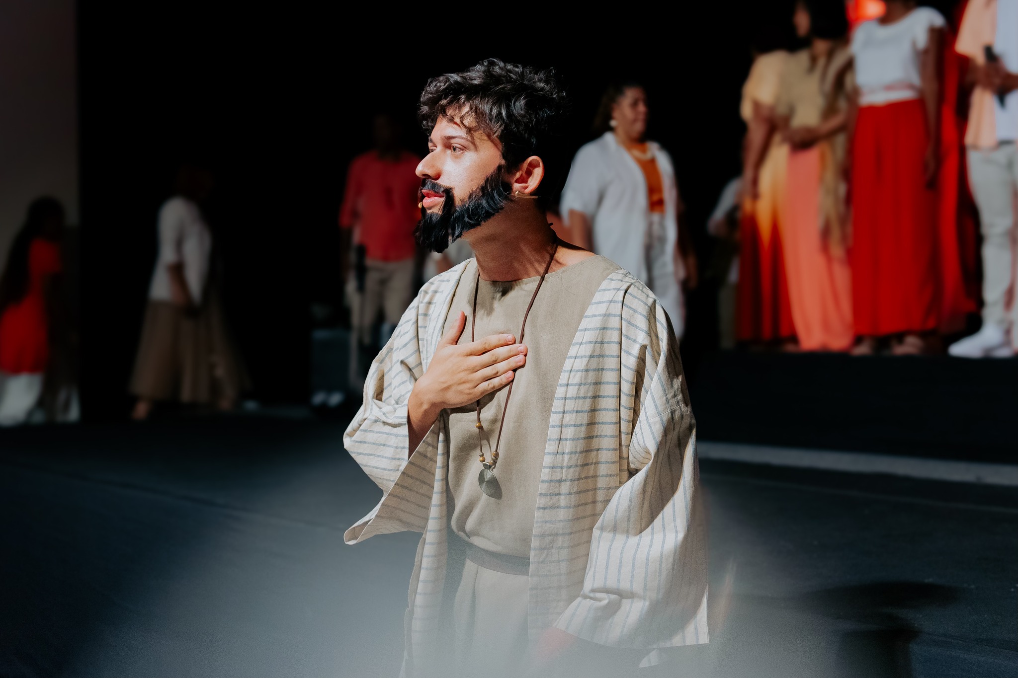 O espetáculo contou com a participação de coristas, atores, crianças, instrumentistas, além de profissionais de sonorização, iluminação e organização, proporcionando um momento de fé e reverência.