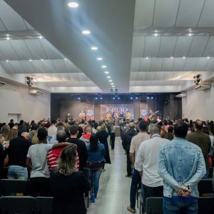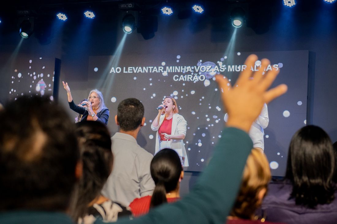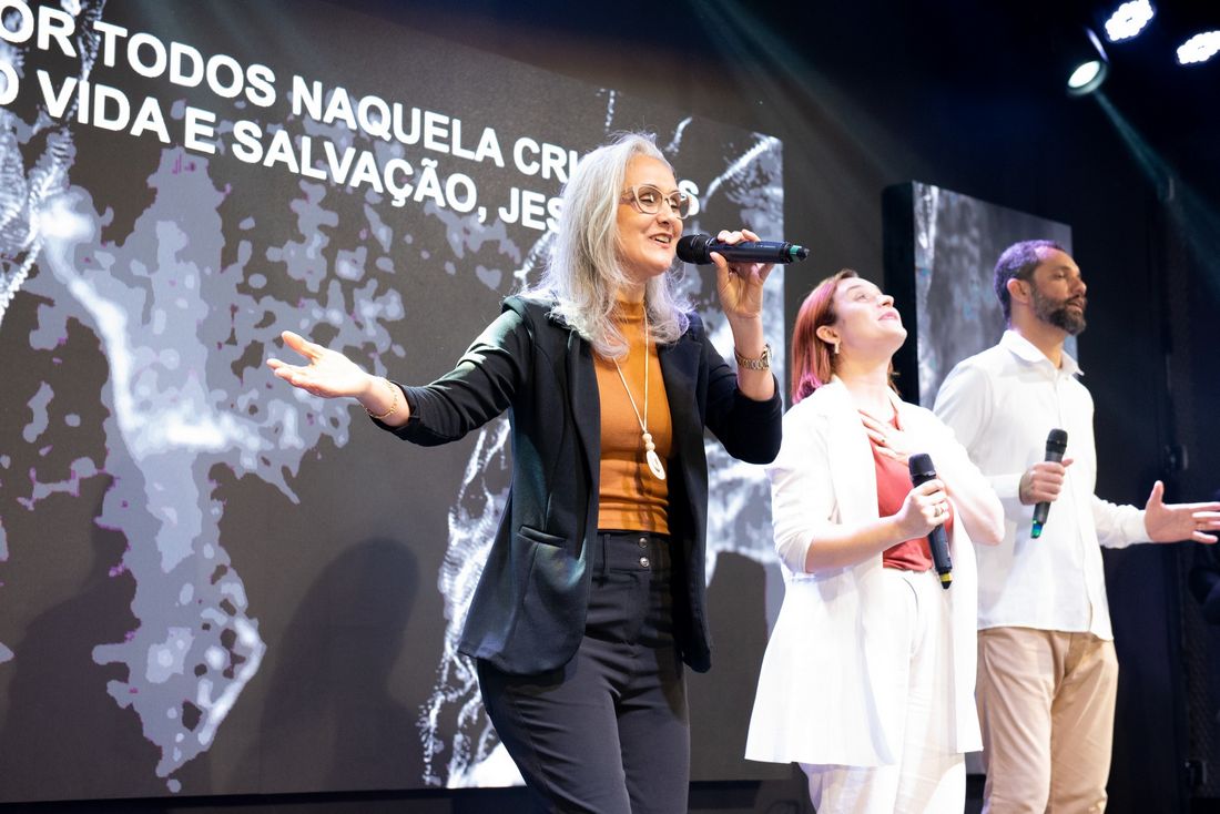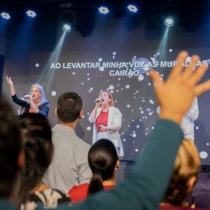 A atmosfera foi de extrema adoração e unção, com Marcia Feijoli conduzindo um momento de oração por cura específica para mulheres.