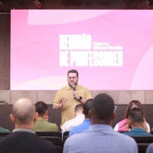 Na sequência, Willa Freitas, integrante da coordenação Doutrinária, compartilhou orientações práticas sobre a preparação de aulas, com dicas valiosas para a organização de slides e a excelência na apresentação do conteúdo. Seu momento foi marcado por direcionamentos úteis e aplicáveis à rotina dos docentes.