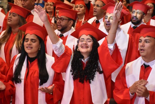 Em seguida, um momento de muita alegria marcou a entrega dos diplomas aos graduados. Após terem cantado o hino oficial do Rhema, houve grande celebração na qual todos externaram a emoção de terem concluído cada etapa.